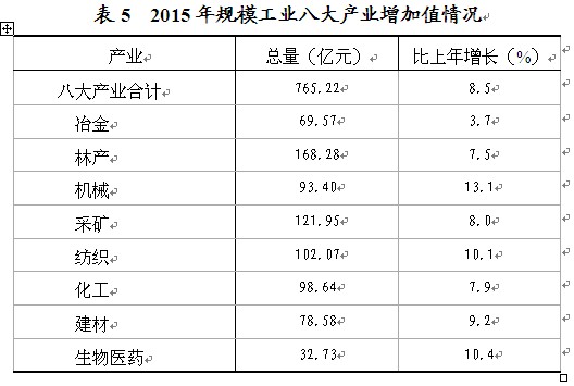 在规模以上工业中,八大产业实现增加值765.22亿元,占规模以上工业的88.3%。