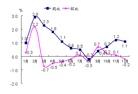 价格水平涨幅较低。全年居民消费价格比上年上涨1.1 %,其中,食品烟酒价格上涨3.4%。商品零售价格上涨 0.9%。工业生产者出厂价格下降0.9%。