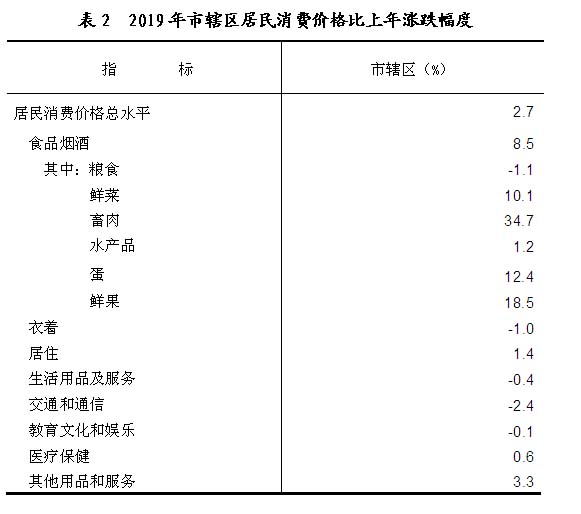 市辖区全年居民消费价格比上年上涨2.7%,其中食品烟酒价格上涨8.5%。商品零售价格上涨 1.3%。