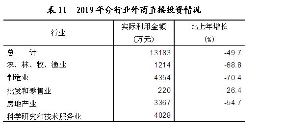 新设外商直接投资企业30家,比上年减少15家。实际利用外商直接投资1.32亿元,下降49.7%。