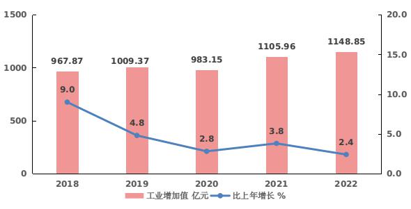 图4 2018-2022年全部工业增加值及其增长速度