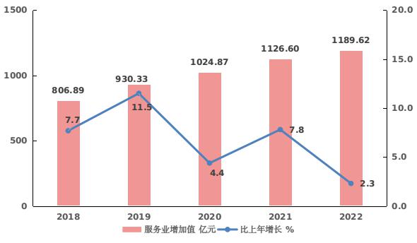 图5 2018-2022年第三产业增加值及其增长速度