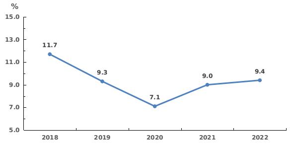 图7 2018-2022年固定资产投资累计同比增长速度