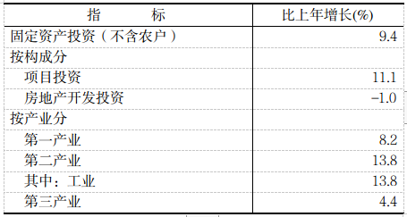 全年固定资产投资1216.01亿元,比上年增长9.4%。第一产业投资34.35亿元,增长8.2%;第二产业投资656.81亿元,增长13.8%;第三产业投资524.84亿元,增长4.4%。工业投资656.81亿元,增长13.8%,占固定资产投资的比重为54.0%。基础设施投资195.74亿元,增长5.9%,占固定资产投资的比重为16.1%。民间投资829.33亿元,增长10.6%,占固定资产投资的比重为68.2%。全年到位资金1216.66亿元,比上年增长6.4%。