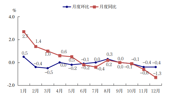 图3 2023年市辖区居民消费价格月度涨跌幅度